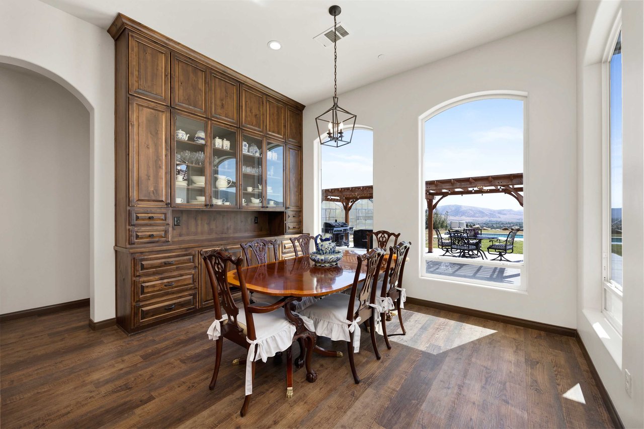 Located in One of Tehachapi's Most Desirable Locations, Old Town Rd. Only 5 minutes from town and all the amenities. Upon entering the Grand Foyer, you will be taken in by the Impressive High Ceilings, Stunning Arch Windows, and Breathtaking Panoramic Views! The entrance flow allows for easy and elegant Living, opening to the Grand Formal Dining, Large Living Room, and Impressive Gourmet Kitchen, with top-of-the-line appliances, with a Massive 10-foot Island in Luxurious White Marbled Quartz. A Large Family Dining Area, with Custom Built-in Cabinets, with Expansive Storage. 2 Sets of double ovens, Charming Hammered Copper Farm Sink, A Large Walk-In Pantry, and so much more. This Kitchen leaves little to be desired. The Large Living Room has a Gorgeous Floor to Ceiling Fireplace made of Cultured Stone, with Hand Milled Blue Oak Large Mantle sourced directly from the property. Luxury Vinyl Flooring Throughout. The property features 5-en suite bedrooms with Extended Height 10-foot ceilings and generous size, walk-in closets. The Master Suite, and En Suite Master Bath features Dual Vanities, Generous Travertine Stone Shower, Stand Alone Soaking Tub, Complete with Large His and Hers Walk-In Closets with room for a craft area. Additional Large Bonus Room. The Laundry Room Extraordinaire features 2 sets of Washers and Dryers, making laundry a snap. Plus, a Beautiful Large Mudroom, with a bath, with easy outside access to gardens. Property features: a +/-5000g Water Tank gravity fed pressure Installed with a triple water filtration system. Property includes your own private shooting range, and endless opportunities.